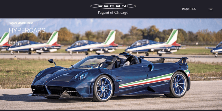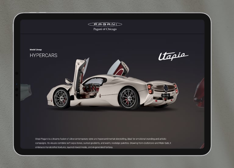 Following the launch of the Pagani of Chicago website, I was immediately tasked with the continuous product development of the site in order to accomodate new client requirements, including a complete rework of the user dashboard menu, developing a model-specific viewing framework, and enhancing the homepage's featured model carousel presentation.