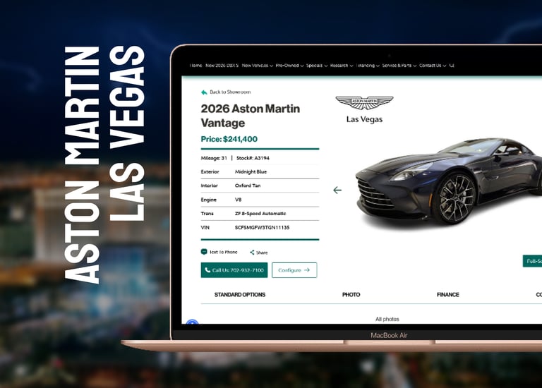 I was responsible for the front-end development and quality assurance of the Aston Martin corporate rebrand across six of their dealer sites (Las Vegas, Greenwich, Los Gatos, Washington DC, Walnut Creek, and Philadelphia), personally ensuring cross-site consistency, responsiveness, and a bug-free launch.